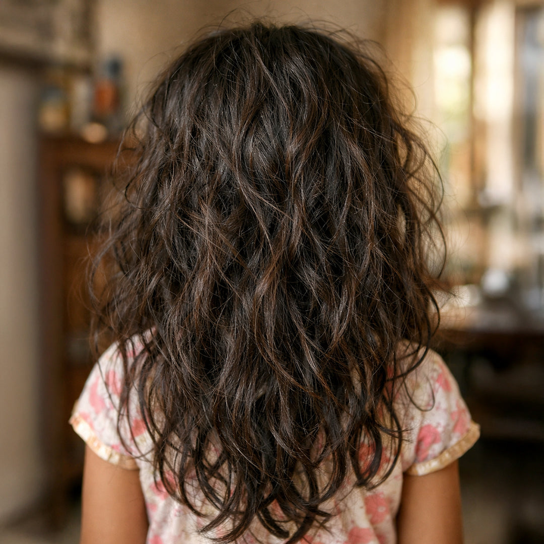 Detangler Hair Style: If your child has thick, unmanageable or tangled hair, apply Omumsie Detangler Serum to their hair and gently comb through it with a wide-tooth comb. This will help to detangle the hair and make it easier to manage.