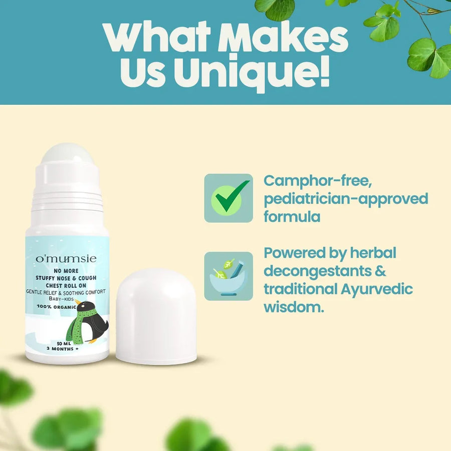 Omumsie baby bubble bath does a lot more than a regular baby bubble bath, thanks to our unique ingredients. The medicinal and aromatic ingredients that we put in the product help soothe fussy babies during the cold cough flu season. Perfect for nighttime baths, it will help kids sleep peacefully through the night.