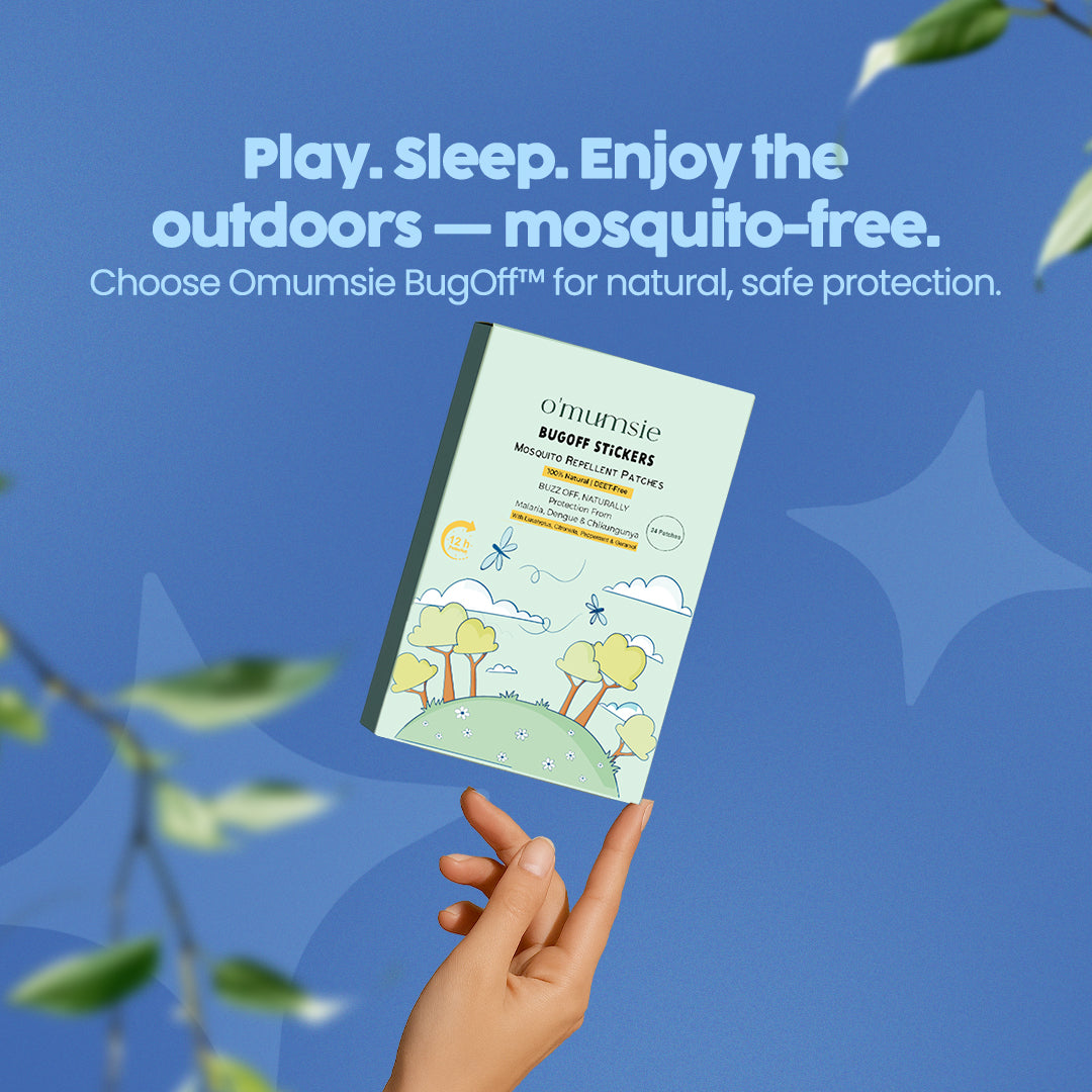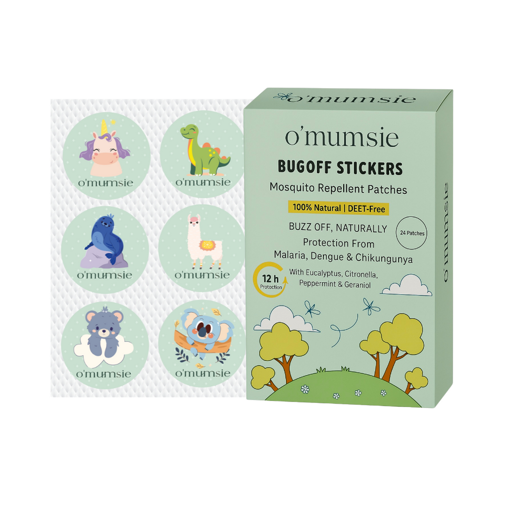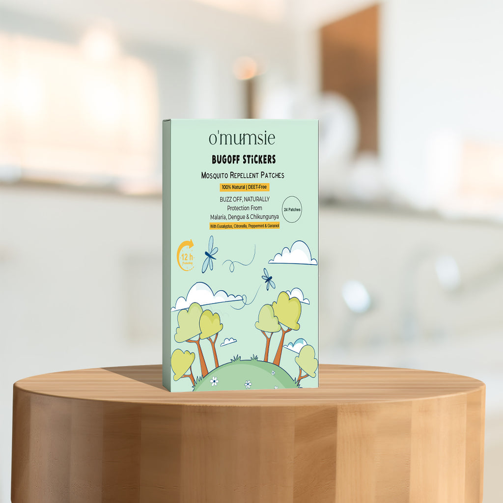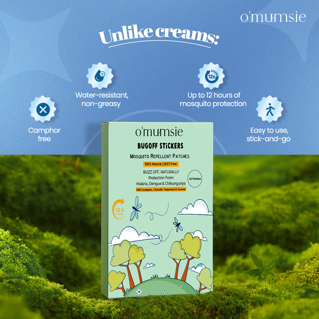 Protect your little ones with Omumsie BugOff™ Mosquito Repellent Patches, crafted with 10% Geraniol oil, Eucalyptus Globulus, and pure natural plant ingredients. These DEET-free patches combine the wisdom of nature with refreshing Thai-inspired aromas—gentle on kids, but tough on mosquitoes.